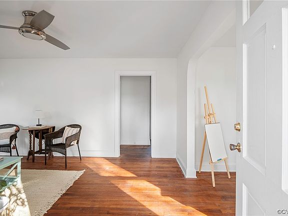 - Description: Ceiling fan, front door entrance, hardwood floor