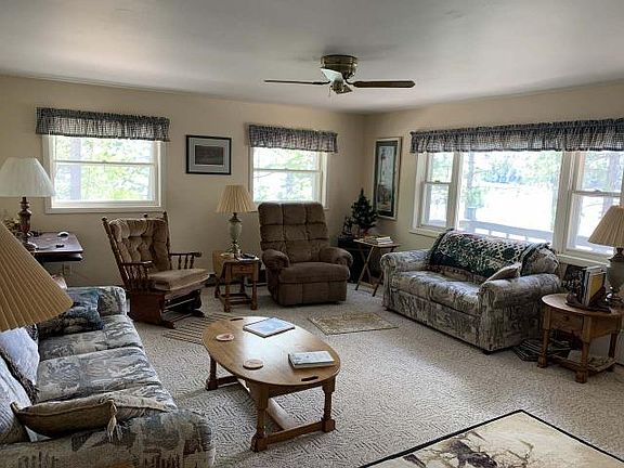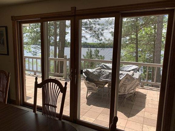 WOW - Location, Location, Location! South to Southwest facing lake home on Dam Lake that's part of the Sugar Camp Chain with 2,300 acres of water all navigable by boat. You'll love this charming, 2-story, 3BR/2BA/2 car garage lake home on over 1 acre at the end of the road for added privacy. 135ft of sandy lake frontage with new pier ready for you to park your boat or fish. Updated kitchen with new cabinets, breakfast bar, granite counter tops, and pantry with pull-out shelves. Enjoy your morning coffee on the front covered porch watching the wildlife walk through your front yard. Facing the lake are 2 swings and 2 firepits. Newer roof, furnace, patio with grill, and stairs to the lake, bathrooms, plus 200 amp service, car port and shed. Great lake for fishing, boating, and snowmobiling. Short distance from Eagle River, St. Germain and Rhinelander for shopping and entertainment.