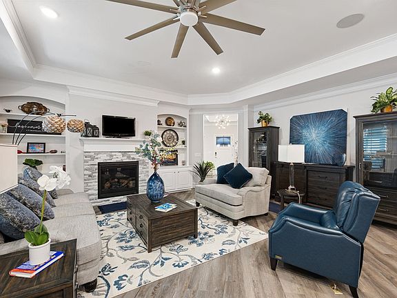 Luxury Living in a 55+ Community Welcome to this beautifully maintained, one-owner home featuring thoughtful upgrades and an open-concept design. The kitchen overlooks the living and dining areas and is equipped with a large island, gas stove, upgraded backsplash, double ovens, and a walk-in pantry. A separate office provides flexible space, while the owner's suite offers a private retreat with a sitting area, spacious walk-in closet, and a luxurious bath with a walk-in tile shower. Two additional bedrooms on the main floor share a well-appointed hall bath, offering comfort for guests or family. The sunroom, complete with tile flooring and a mini split, adds comfortable year-round living space. The finished basement-accessible from both interior and exterior entries-includes a large living area, full bath, and bedroom, along with abundant storage closets. Perfect for guests or entertaining. Notable upgrades include a Sonos Sound System, EV charging receptacle in the garage, custom shelving systems in closets and pantry, upgraded lighting, tankless water heater, and more. This active 55+ community offers resort-style amenities including a pool, fitness center, and clubhouse-delivering the perfect blend of comfort and convenience.