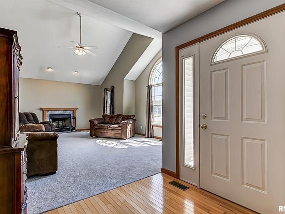 This three bedroom ranch is located on the west side of Springfield, close to the Interstate, in Deerfield Subdivision and New Berlin School District. Hardwood foyer and hallway leads to large light filled living room with vaulted ceiling and wood burning fireplace. Formal dining room also has new carpet. Kitchen features a stainless steel fridge, gas range, and eat in area. Main bedroom suite has new carpet, walk in closet, and full bath. Second bedroom is used as an office and the third bedroom is spacious with a walk in closet and new carpet! The laundry and utility room has storage and shelving. Patio off garage is fenced for privacy (although yard is larger, and fence sits inside the property boundary). Large side yard. Fresh neutral paint throughout. Roof replaced approximately 2012.