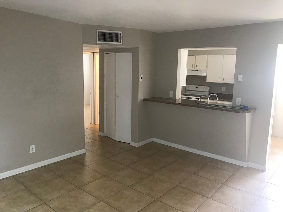 This 800 sq. ft. 2 bedroom , 1 bath unit has been recently updated with new counter tops, tile floors, bath tile surround, and fresh two tone paint. It offers an open plan with an eat in kitchen and bar area that opens into the large living room. There is ample storage with large closets in each bedroom as well as a hall closet. It features both a cooler and an a/c for your choice of climate control and affordability. The unit is on the second story which looks out onto a beautiful tree. The complex offers plenty of parking for guests and residents. Pets are upon approval. Finishes may vary slightly from the photo's shown. Tenant pays electric. Owner pays water, sewer, and trash.