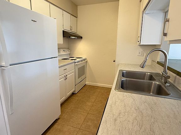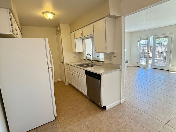 Light, bright, ground level unit with a large private fenced yard. Offering tile throughout with new double paned windows and french doors leading out to the yard. The kitchen is open to the living room with a breakfast bar and eat in dining. Lots of storage with two pantries, a hall closet and under stairs storage for large items like bikes. It is 2 bedrooms, 1 bath in 750 square feet. The safe, quiet complex offers plenty of parking for yourself and your guests. There is shared laundry facilities on site. Photos are of the actual unit. Pets are on approval. Owner pays water, sewer, and refuse. Tenant pays electric.