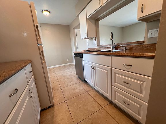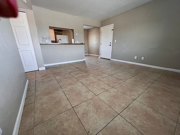 This 2 bedroom, one bath upstairs unit has an open living room, dining room, and kitchen layout with an eat up bar. The kitchen has plenty of cabinets with a hall pantry and coat closet for additional storage. Both bedrooms have large closets. The dining room is adjacent to the kitchen for easy access. It is tile throughout with a tiled shower surround. New windows have been installed for your comfort and a view of the mountains. This is a safe and secure complex which is conveniently located between Speedway and Broadway. The tenant has one assigned parking space with plenty of spaces available for an additional vehicle or guests. There is an on-site laundry facility. Tenant pays electric. Landlord provides water, sewer, and refuge. Pets are on approval.