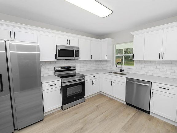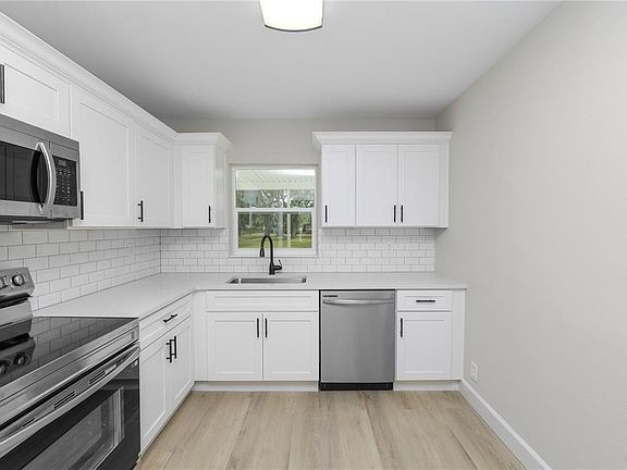 Welcome home to this fully renovated 3-bedroom, 2-bathroom residence tucked away at the end of a quiet cul-de-sac in desirable South Lakeland, just off Pipkin Road. Enjoy the perfect blend of privacy and convenience with quick access both east and west, shopping, dining, and major roadways. This home has been thoughtfully updated from top to bottom, featuring major upgrades including a new roof, new windows, new A/C, new electric water heater, and updated electrical and plumbing. Step inside to discover a stunning brand-new kitchen complete with stainless steel appliances, modern cabinetry, and sleek quartz countertops, perfect for entertaining and everyday living. The home offers a spacious primary bedroom, updated bathrooms, and a large interior laundry room for added convenience. There is also new luxury vinyl plank and carpet throughout the home. The dining room features built-in shelves for storage and styling, and flows seamlessly to the outdoors through a new sliding glass door, leading to a spacious screened-in back porch - ideal for relaxing with family or hosting guests. Enjoy morning coffee on the large open front porch while soaking in the peaceful surroundings. Outside, the property offers a spacious yard with a partial wood fence, a generous shed perfect for additional storage or projects, and it all sits on .77 acre. This move-in-ready home checks every box - style, comfort, and location!