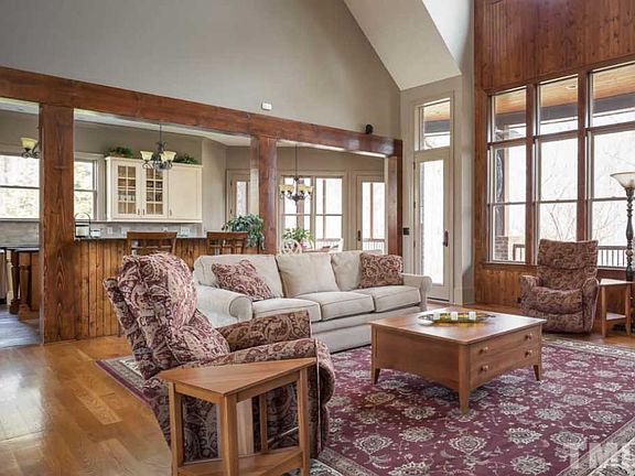 This majestic lodge style home has such a mountain retreat feel w/some old world architectural elements- brick, stone, & wood exterior. Inside features exposed wood beams, amazing open floor plan, site-finished hardwood & tile floors, stone fireplace, & soaring ceilings. Kitchen has granite countertops, tile backsplash, 6-burner gas cooktop, & double ovens. 1st floor master BR, 2nd floor bonus/BR & bath, finished basement w/family room, exercise room, office, guest suite, kitchenette, & 3 more full baths.