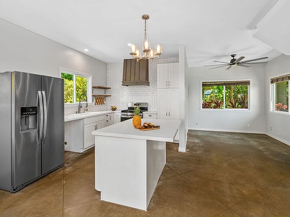Step inside and immerse yourself in the simple island lifestyle. With 9-foot ceilings downstairs, the home welcomes you with an open and inviting ambiance. The white kitchen boasts quartz countertops, stainless steel appliances, and a gas range, allowing you to create your meals with locally grown food from any of the 4 weekly Kapaa farmer’s markets. Enjoy the low-maintenance stamped-concrete floors downstairs. The carpeted stairs lead you to two cozy bedrooms upstairs. One of the bedrooms even includes a loft, providing a space for relaxation, storage, or play.