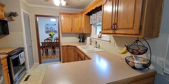 Darling ranch home offers 3 br and 2 bath. Hardwood floors on main level. Nice sized master with carpet, ceiling fan, and wide crown mould. Large living room open to formal dining area and bay window overlooking back patio and landscaping beds. Kitchen has area for small table and offers great counter space and pantry. Lower level with large rec room and beautiful vaulted family room- walks out to stone laid patio. Storage area with built in shelving and utility kitchen area. Home has been beautifully maintained. Shows very well! 2022-07-07