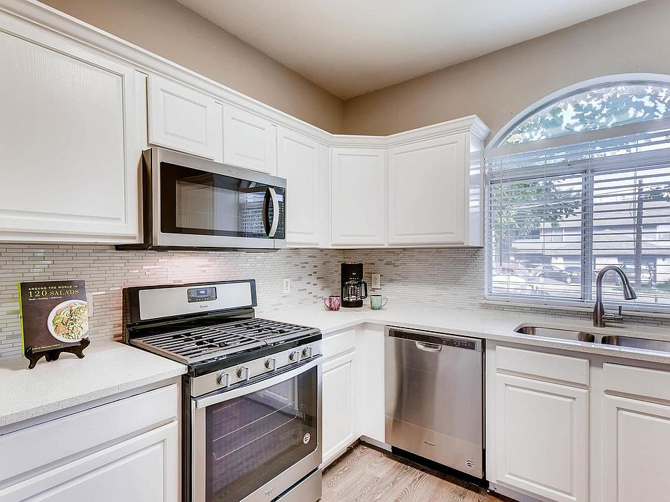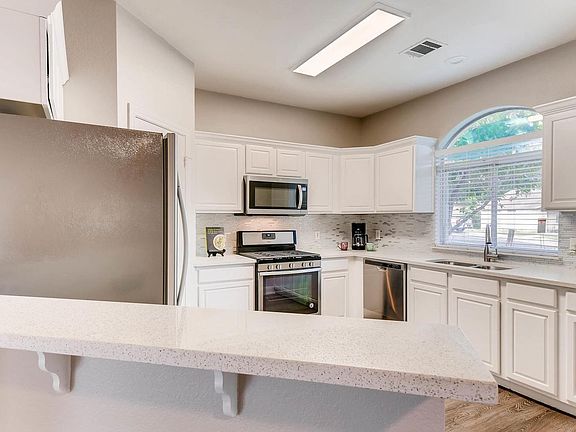 Updated and spacious 3bd/2ba with a one car garage! This single story features an open floor plan, quartz counters in kitchen & baths, stainless steel appliances w/5 burner chef's stove, designer plumbing fixtures, fresh paint & premium faux wood flooring. Modern construction with newer HVAC, water heater, double pane windows & LED lighting make this home truly energy efficient = lower utility bills. Live large w/tall ceilings, pantry, generous storage & master bed w/oversized walk in closet. Ample windows & 2 in blinds let in tons of natural light. Enjoy a large yard and rear entry one car garage. Premium southeast location close to St Elmo Project, HEB, downtown, UT & 183 w/easy access to the airport. This is one side of a duplex with only the garage on the shared wall.