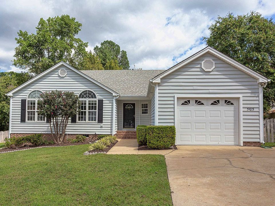 Waiting for dd money! Taking backup offers. It does not get any better than this sought after Updated one level home! Fenced back yard in convenient location just minutes to 540 without the road noise. Fabulous remodeled master bath with granite, beautiful tiled walk in shower, dual sink and tile floors! Spacious master bedroom with vaulted ceiling and huge closet! Home was recently painted from top to bottom and new carpet in bedrooms. Vaulted ceilings in most every room adds a dramatic feeling. Kitchen boasts a gas cooktop, window above sink, granite counter tops and seating for 2 at the bar. Close by you will find the washer and dryer and one car garage. Enjoy the backyard with large deck and level yard. Perfect for pet! See list of upgrades in mls docs!