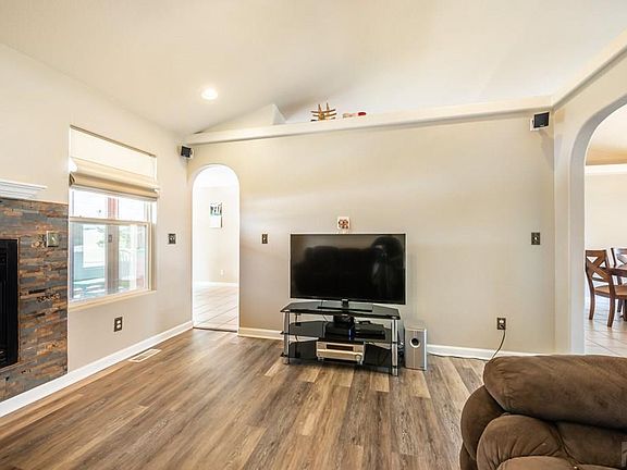 - Interior Features: Ceiling Fan(s), Garage Door Opener, Walk-In Closet(s), New Floor Coverings, New Paint, Tile Floors, Window Coverings, Security System Owned, Walk-in Shower, Vaulted Ceiling(s), Surround Sound, Smoke Detector/CO