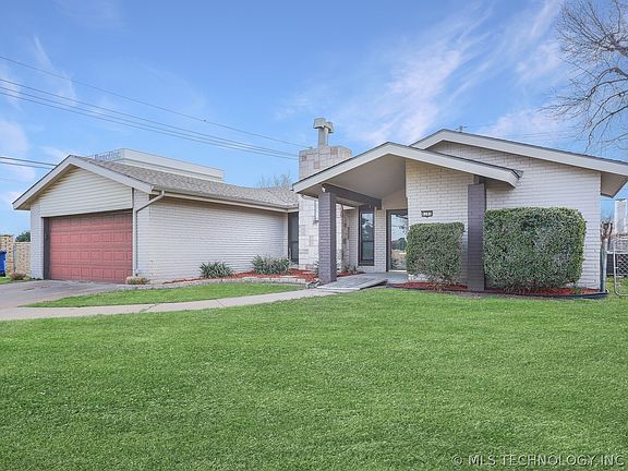Awesome location, central to shopping and highways! Newly painted interiors with two living areas and a fireplace in the main living area. Kitchen is at the back of the house leading to the huge backyard & patio area. Desired split plan, the master has a large walk-in closet with a separate double sink from the shower area. The two good-sized bedrooms are on the north side with huge storage or mudroom. 8x10 (approx) shed stays and all appliances (all exempt, but working).