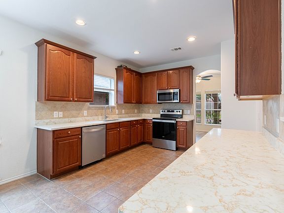 Ceiling fansGranite countertop and backsplashSpacious eat-in kitchenPlenty of cabinetryLarge walk-in pantry
