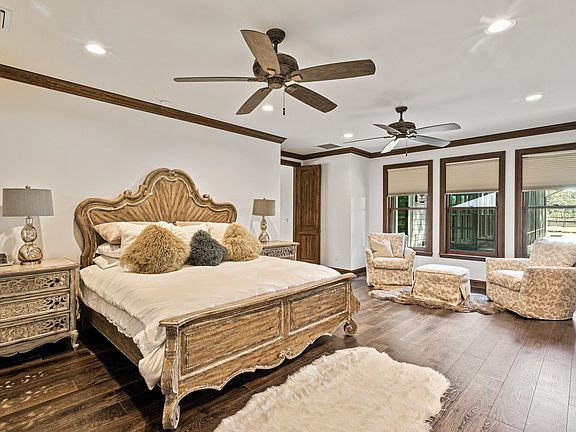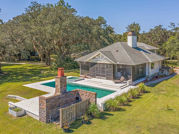 This luxurious Equestrian Estate encompasses over 49.5 acres, and is constructed with premium materials and high quality finishes throughout, all located within a 10 minute drive to the World Golf Village. The estate consists of a 4,379 sq ft primary residence with 4 bedrooms and 4.5 bathrooms, a 1,824 sq ft guest cottage containing 2 bedrooms and 2 bathrooms, concrete block center isle equestrian stables, a utility barn and numerous established paddocks with run-in shelters for horses. Upon entering the primary residence, you are greeted by a gorgeous custom glass and wrought iron wine room with intricate detailing. The vaulted ceilings and spacious open concept offer a grande atmosphere in the kitchen, living room, & dining area centering around a custom designed stone gas/wood fireplace that bring the space together with a cozy ambiance. Gourmet chef's kitchen includes Bennett's Custom Cabinetry, solid surface counter tops, two copper apron front sinks, upscale appliances, a walk i a walk in pantry with built-ins and a large wet bar for entertaining. Foldable glass doors on the rear of the home lead to the wrap around screened lanai complete with an attractive outdoor kitchen and misting system for added comfort all overlooking the heated saltwater pool, spa and free-standing outdoor fireplace. This home was fully reconstructed with heavy duty 2x6 framing a large addition in 2017. It is wired with a Sonos home audio system throughout including the patios, has a central vacuum system, 50 year architectural shingled roof, spray foam insulation in the attic and a whole home Generac propane generator. The two-story guest cottage was built in 2017 and also features Bennett's Custom Cabinetry, solid surface counter tops and high-end finishes and has an open floorplan with the main living area and one bathroom on the first floor opening up to a screened patio. Concrete block center isle 8 stall barn with separate climate-controlled feed room and tack room, large loft storage area, wasah rack and full bathroom. Ramm Flex fencing separates the four established grassy paddocks each containing its own run-in shelter with ceiling fan. The perimeter of the property has a natural vegetative buffer for added privacy and there are 12 acres of planted pine trees just on the opposite side of the power line easement from the rear of the paddocks. A solid custom-built electric gate adds privacy and security to this estate.