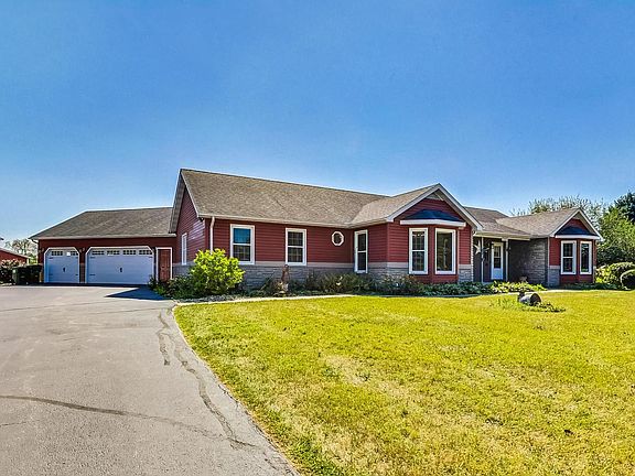 Welcome to a place where your dreams of rural living come to life! This beautiful farmette in unincorporated Richmond offers endless panoramic, picturesque views AND full of updates! This spacious yet cozy one-story home features an open floor plan with a split bedroom layout, offering 4 en-suite bedrooms and a half bath for guests! The great room is the heart of the home, featuring a vaulted pine ceiling with beams, a stunning stone fireplace, gleaming American cherry flooring, and a wall of windows and doors leading to the 3-season room. This room, with its soaring pine beamed ceiling and walls, is the perfect space for entertaining while enjoying the ever-changing views of the surrounding landscape. Adjacent to the great room, the dining room showcases finely crafted charming barn door window treatments. Just wait until you see the kitchen! This large, inviting space features custom Amish-made hickory cabinetry with built-ins, stainless steel appliances, a spacious breakfast area, and an impressive 11 x 8 butler's pantry with abundant storage-including an additional fridge! Two office spaces conveniently accommodate work from home families! But wait, there's more! The full basement features 9 ft. ceilings and is partially finished, including the 4th en-suite and the family room! The unfinished portion offers plenty of storage space, a sauna that stays with the home, and exterior access to the 3+ car garage. Now, let's head to the barns! Standing tall and proud, these ruby red barns are the epitome of country charm. The first barn can house 4 vehicles, tractors, and more, with a loft workshop perfect for a landscape business or hobbyist. The second barn is BIG-48 x 36, 25 ft. high, with a 12 ft. door and two 8 ft. doors-ideal for horse stables, RV, plane, or boat storage, and even barn dances or weddings. This barn is part of the McHenry Co. Quilt Tour! The possibilities are endless! This incredible property sits on almost 2 acres and adjacent to conservation land, featuring numerous fruit trees, a garden, a firepit, and the soothing sounds of Nippersink Creek nearby. You may even get occasional visits from friendly wild turkeys, deer and Sandhill cranes! Close to shopping, recreation, and quaint downtown Richmond! Come enjoy country life!! HURRY! This one won't last long.