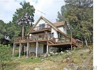 Listing agent: Patty Fairbanks, Call 559-658-1111 for information. Enjoy the privacy and mountain views from several decks. Nestled on over 1 acre and at the end of the cul-de-sac. The living room has a pellet stove and many large windows and is open to the dining room and kitche. One bedroom is located on the main level with two bedrooms and bathroom upstairs. This home wood laminate flooring and upgraded plumbing and lighting fixtures. This is a short sale!