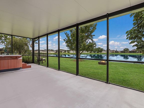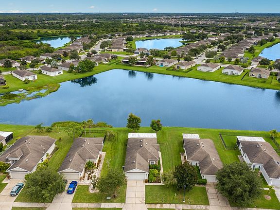 Excellent opportunity to own a well-priced 3 bed 2 bath, 2 car garage home in Harrison Ranch! The floorplan flows very well, the home is freshly painted and has newer flooring throughout (no carpet!). Step outside to the large 30x12 covered enclosed patio, perfect for entertaining, and gives the home an added outdoor living space with a beautiful, long water view. The hardly-used hot tub is the bonus feature of the large enclosed patio - Only used for 3 months. Harrison Ranch offers resort-style amenities such as a heated Jr. Olympic-sized pool, fitness center, billiards, tennis, basketball courts, playground, park & miles of nature trails for hiking or biking. The HOA fee is only $115/yr and the CDD fee is included in the property tax amount. The nearby Fort Hamer bridge links the Parrish community to Lakewood Ranch. Don't miss out on your opportunity to make this beautiful home yours!