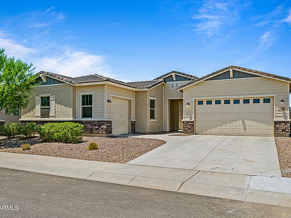 This charming house, just a short 15-minute drive from Luke Air Force Base, offers an assumable 4.625% VA loan, making it the perfect choice for military families. It is located on a lovely ''corner'' lot (bordering a common area, not a street) and offers low-maintenance landscaping, a 4-car split garage, and a cozy courtyard by the front door.
