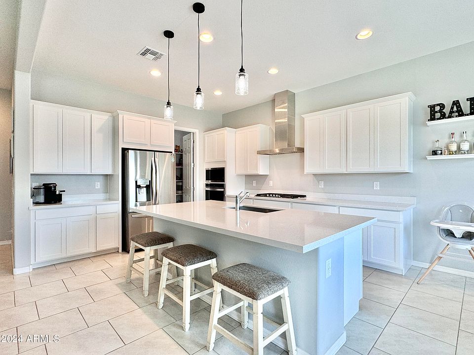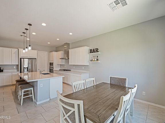 Step into a warm, inviting interior with designer paint, ample natural light, modern fixtures, and beautiful staggered tile flooring in the main living areas. The formal dining room is perfect for hosting special gatherings, while the spacious great room seamlessly connects to the gourmet kitchen for easy entertaining... The kitchen features quartz countertops, white shaker cabinets, a huge walk-in pantry, a large island with a breakfast bar, and stainless steel appliances including a gas cooktop and wall ovens.