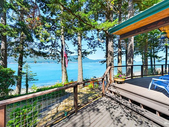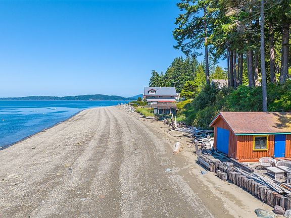 Rare opportunity to own waterfront on the coveted West side of Guemes Island. Access your beach, tidelands and boat house with your own paved path. Newer, main vacation home has a vaulted ceiling and beautiful, Olive hardwood floors. Great room with custom wood fireplace and fan. Built in reading nook/daybed. Large windows capture the stunning views of Cypress and the Cone Islands and Bellingham Channel. Gourmet kitchen with custom cabinets. Entertain on the large deck and watch the sunsets. Spacious loft bedroom with views. Guest studio apt with kitchenette and 3/4 bathroom. Bunk house with beds. Two car, 728 SF garage with shop space. Enjoy the convenience of island life with only a 5 minute ferry ride from Anacortes.