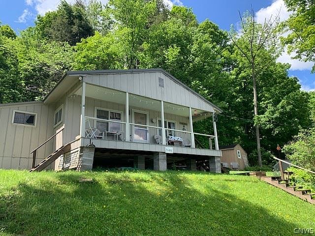 Picture Rockers on the front porch over looking gorgeous water vistas ! Now is your chance to buy a wonderful seasonal cottage on lovely Bradley Brook Reservoir, at a very realistic price! Needs some work but what a beautiful hillside setting. Laundry hookups in utility room, 10 x 12 shed for ample storage space and workshop area behind the cottage. Metal roof installed 2013, replaced original plumbing in cottage in 2012 with Pex plumbing. 30 gal. hot water tank in 2012. Crystal clear waterfront , plus a firepit in backyard. Also has a 30 amp. hookup for a weekend visitor with a camper! Time to make your own memories in this lovely spot. Property being sold in "as is" condition.