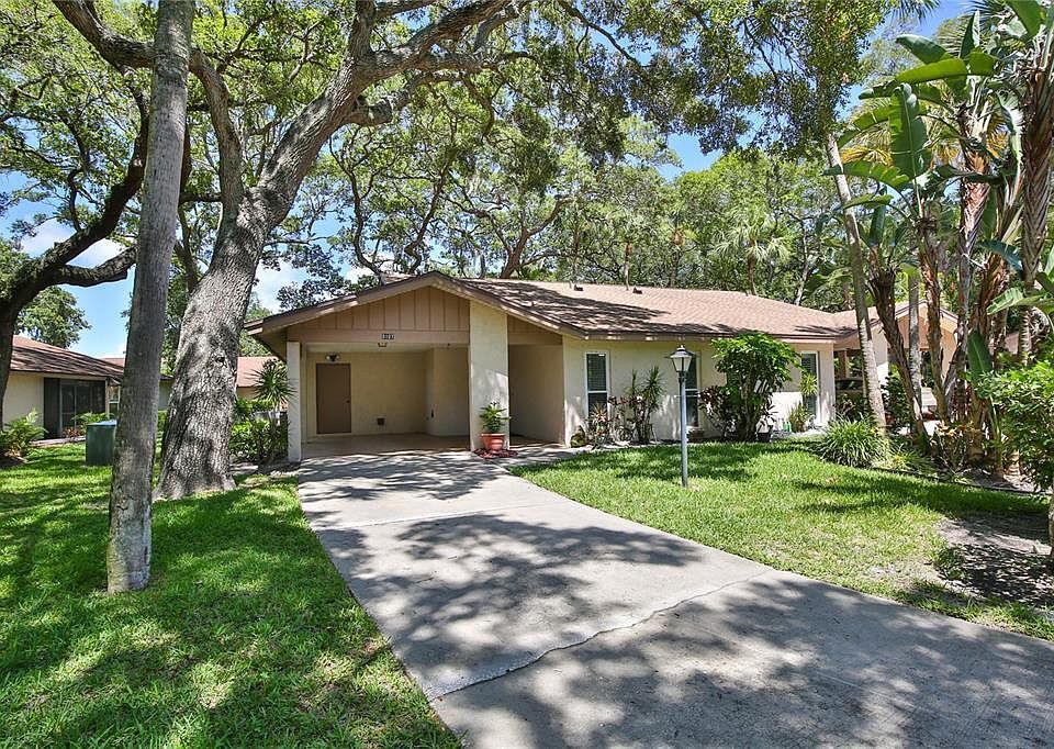 Enjoy an affordable maintenance free lifestyle in this 2BD/2BA split-plan condo with a spacious attached carport. This charming paired villa is ideally located on a quiet cul-de-sac and nestled among mature oaks. The light and bright interior has a coastal color palate, with easy-care tile and laminate flooring throughout. The enclosed lanai offers the perfect sunny setting for your morning coffee. Sliding glass doors open to the back deck with room for a BBQ grill. There are plenty of storage options with an exterior closet off the carport and an additional closet in the lanai. The clubhouse is a great gathering spot with a pool table and kitchen, enjoy swimming year-round in the heated community pool. Woodland Village is a small community with no age restrictions and pet friendly, allowing 1 pet up to 30 lbs. Centrally located, convenient to shopping, restaurants, IMG Academy & SCF campuses and a 15 minute drive to the gulf beaches. These popular villas rarely come on the market, don't miss this opportunity!