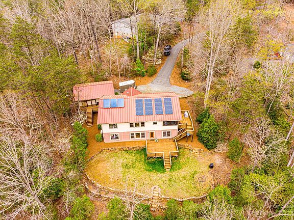 Welcome to your private lakefront oasis! This energy-efficient custom-built home boasts a screened porch and a large deck perfect for enjoying stunning lake views. The detached garage provides ample storage space, while the standing seam metal roof ensures durability for years to come. Inside, live edge Virginia Pine ceilings add rustic charm to the modern design. Don't miss this opportunity to own a stunning retreat on the water.