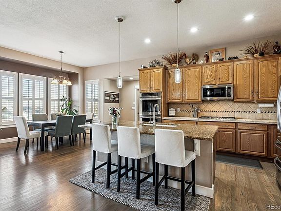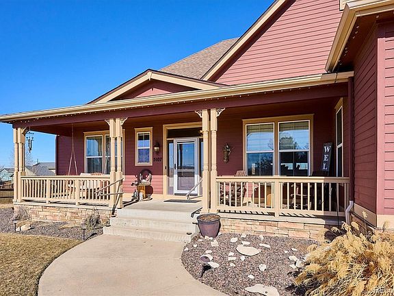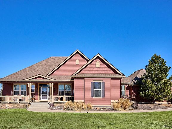 Stunning Custom Ranch Home with Breathtaking Mountain Views! Situated on over an acre of land, this property boasts a spacious covered porch and an open, airy floor plan with 5 bedrooms and 5 bathrooms. The welcoming entry leads to a vaulted great room with a cozy gas fireplace, and a large kitchen featuring a full dining area, island with an ice machine, stainless steel appliances, and granite countertops. The bedrooms are thoughtfully spaced for maximum privacy. The grand primary suite included a private patio access and a luxurious swim spa/hot tub, while the 5-piece primary bath features a jetted soaking tub. The spacious backyard is fully fenced, with a patio perfect for entertaining. The finished basement offers an incredible kitchen/wet bar with seating and a cooktop, microwave, and wood-look tile flooring, along with a guest bedroom and a large bathroom-ideal for mother-in-law living quarters. Huge crawl space length of living room and kitchen. Additional features include a main level laundry/mudroom with a utility sink, plantation blinds, and the potential for an outbuilding/shop with HOA Approval. A Great Home To See! Six Minutes to downtown Castle Rock.