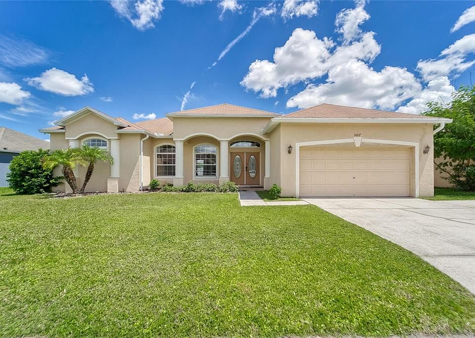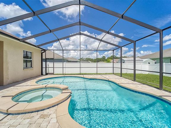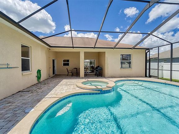 4 bedroom 2 bath Heated POOL HOME in the desirable Ashwood Community. NO CDD and a VERY LOW HOA! The high ceilings and open floor plan give this home a spacious feeling. There is new laminate flooring in the living room, dining room, and all the bedrooms. The foyer, family room and hall have engineered wood floors, so there is no carpet. The huge master bedroom has crown molding and even has an extra bonus room which could make a nice office. The master bath has a large garden tub, separate shower, dual sinks, and a large walk-in closet. Two of the 3 secondary bedrooms at the other end of the home also have walk-in closets. The kitchen is at the center of it all with a window that looks out to the pool area. The screen caged, heated, and salt chlorinated pool and spa were added in Oct 2017, and are surrounded by pavers. The screened area covering the pool is 34 x 30. There is a large covered lanai providing some nice shade by the pool. The backyard is private thanks to the vinyl fencing. All this on a large lot where your neighbors are not too close. This community has easy access to I-4 via 570 within a few minutes!