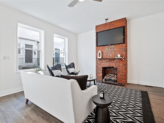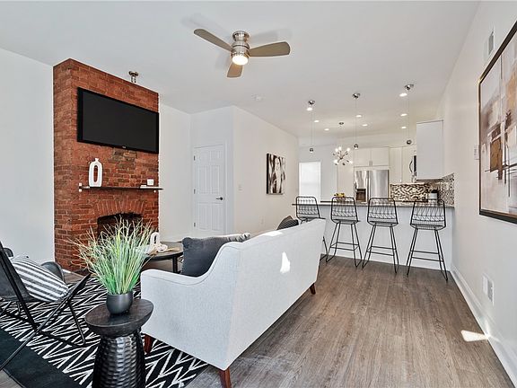 Stylish and modern, this Lawrenceville home is just a block from the shops and restaurants of Butler Street! The open floor plan showcases designer-selected finishes throughout. The custom kitchen features ample storage, quartz countertops with a waterfall edge at island, a contemporary backsplash, stainless steel appliances, and an eat-in island that seats four. Relax in the spacious living room, highlighted by an exposed brick chimney, or enjoy the convenience of the first-floor powder room with sleek finishes. Upstairs, the primary bedroom boasts abundant closet space and exposed brick accents, while the luxurious bathroom includes a tiled walk-in shower and custom vanity. A private third-floor bedroom offers flexibility as a spacious flex space or bedroom. The bright basement provides plenty of storage, and the rear patio is perfect for outdoor relaxation. Located near cafes, restaurants, and an easy commute to hospitals, universities, and the Strip District, this home has it all!
