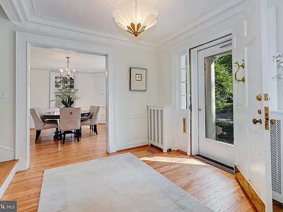 This lovely center hall Colonial features approximately 3,700 square feet, and three finished levels. The main level includes a welcome foyer with chandelier and guest closet, an elegant Living Room with exquisite crown molding and wood burning fireplace, surrounded by custom paneling, Den, a formal Dining Room with exquisite crown molding, & corner cabinets, Kitchen w/Corian counters, white appliances, and direct access to the driveway & garage, a library with sliding doors to deck, powder room, and a light filled Family Room or 4th Bedroom with 2 closets, and sliding doors to deck., which lead to a private garden, Full Bath and 1 car Gar Parking. The addition was designed by Hugh Newell Jacobsen The second level features an Owner suite with a wall of closets, updated en-suite bathroom with double sink, water jet tub, and linen closet. There are two additional roomy bedrooms and an updated hall bath. The lower level includes a paneled recreation room , large laundry/utility room and bonus room w/bath for storage The beautifully landscaped garden has a large deck perfect for entertaining. See Montgomerycountymd.gov for more tax information
