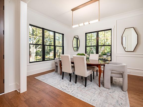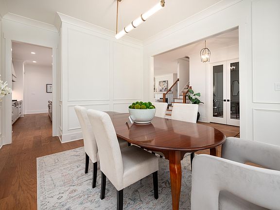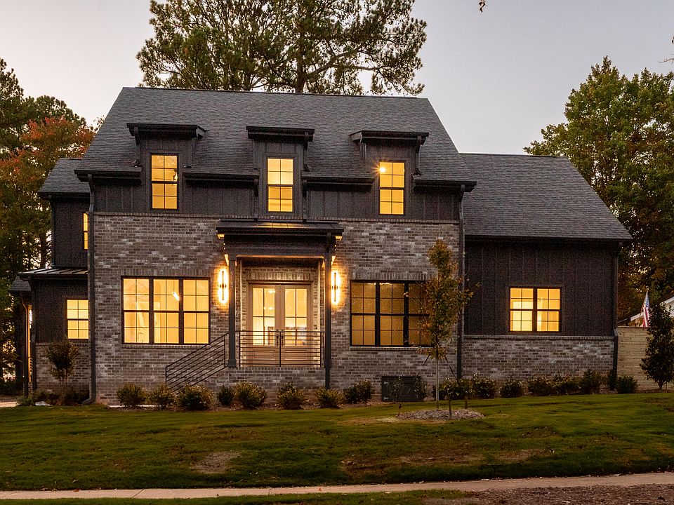 This residence offers exceptional convenience, situated within walking distance of Quail Corners shopping center and a mere ten-minute drive from the vibrant retail and dining scene of North Hills. The exterior showcases a blend of classic and modern aesthetics, featuring a brick front complemented by durable fiber cement board and batten and horizontal lap siding. Stained wood double entry doors welcome you into an open-concept family kitchen room, highlighted by a gas log fireplace flanked by custom built-ins with base cabinets and open shelves. A 16' double slider glass door off the family room opens to a covered porch with a gas log fireplace, perfect for outdoor relaxation. The kitchen boasts shaker-style cabinets, quartz countertops, a tile backsplash, and an island with pendant lighting. A scullery provides additional storage and workspace, while a mudroom with a drop-off bench offers access to a side porch and a two-car side-load garage. A separate formal dining room and a main floor study with double French glass doors cater to both formal and casual living. The main floor primary suite is a luxurious retreat, featuring a freestanding tub, a walk-in tile shower with a bench and niche, a dual vanity, and a large walk-in custom closet with washer and dryer hookups. Hardwood stairs lead to the second floor, which houses three additional bedrooms, each with its own full bath, a large recreation room with a dry bar, and a flexible room adaptable to various lifestyle needs, such as exercise or crafts. A full laundry room and walk-in attic storage complete this thoughtfully designed home. Currently under construction, this exceptional property is estimated for completion in September 2025.