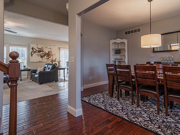 Imagine seeing sunsets like this, from your backyard, all the time. You can't always sit outside on the brick paver patio, with the fire pit on, sipping a beverage of your choice. Lucky for you, the interior of this home is just as beautiful. Your grand entry way is open to the formal dining room with hand scraped hardwood floors and family room with a gas log fireplace and carpet that was new in 2018. The eat in kitchen features the desirable open concept with an island, granite counter tops, newer stainless appliances and double door pantry. There is plenty of room to store those backpacks, kick off your shoes, hang up your coat in the built in locker system located in the mud room, right inside the garage. The carpet was replaced throughout the second story in 2018 and was just professionally cleaned. The laundry room is conveniently located on the second story, making it easy to put laundry away in the bedrooms. The primary suite has separate walk in closets across from each other and lead in to the primary bath with a whirlpool tub, walk in shower and separate vanities so everyone has their own space. As if that isn't enough, you still have an entire finished basement with a family room, 5th bedroom and full bathroom, plus storage area. HVAC new in 2022 by Mike Williams (15 year transferrable warranty).