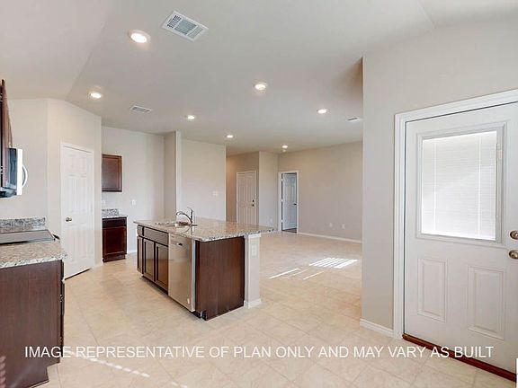 The Ashburn plan is a one-story home featuring 3 bedrooms, 2 baths, and 2 car-garage. The entry opens to the guest bedrooms and bath with hall linen closet. The kitchen includes a breakfast bar with beautiful counter tops, stainless steel appliances, corner pantry and opens to family room. Bedroom 1 offers privacy along with attractive bathroom features such as dual vanities, water closet and walk-in closet. The standard rear covered patio is located off the dining area. You’ll enjoy added security in your new DR Horton home with our Home is Connected features. Using one central hub that talks to all the devices in your home, you can control the lights, thermostat and locks, all from your cellular device. DR Horton also includes an Amazon Echo Dot to make voice activation a reality in your new Smart Home on select homes. With D.R. Horton's simple buying process and ten-year limited warranty, there's no reason to wait. (Prices, plans, dimensions, specifications, features, incentives, and availability are subject to change without notice obligation)