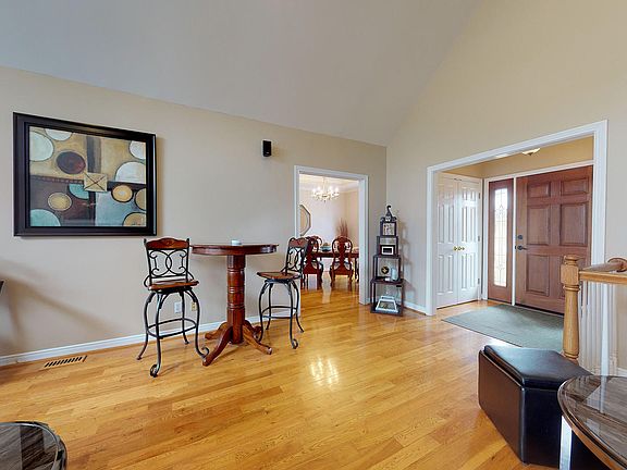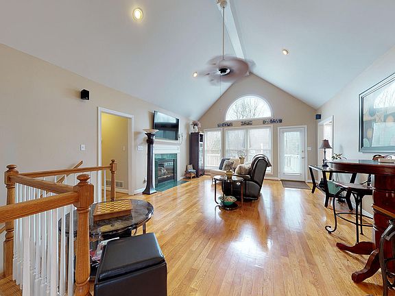 Are you looking for a home that is private but still close to amenities? This is the home you have been waiting for. This beautiful walk out ranch is situated on a wooded lot creating plenty of privacy. With 1.75 acres of land, 4 bedrooms, 3 full bathrooms, and a 3 1/2 car garage there is so much to enjoy. Walk in to the vaulted ceiling living room with crown molding and floor to ceiling windows that look out over the gorgeous back yard. Through the living room in the kitchen with beautiful Silestone countertop, cherry cabinetry with large bay window and breakfast nook that looks out over the back yard. The formal dining room with trayed ceilings is located off the living room and provides plenty of natural lighting.