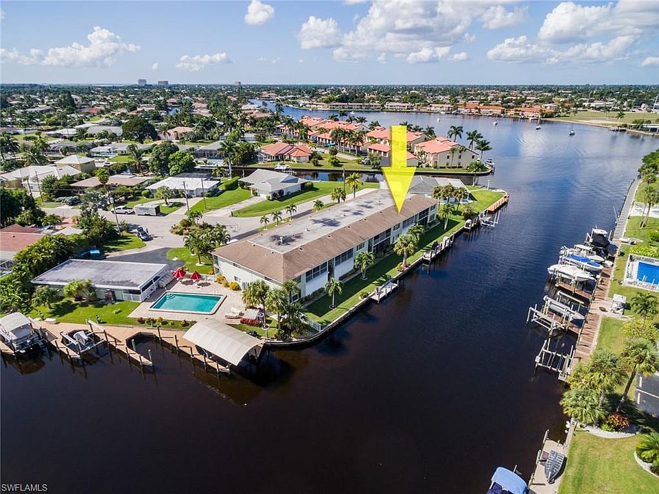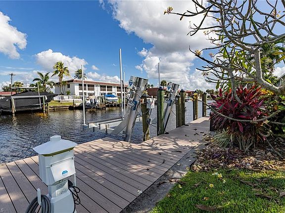This gorgeous, move-in ready, turnkey, Sailboat Access condo is for YOU! The 55+ community is conveniently located south of Cape Coral Pkwy., less than two miles from the Cape Coral Yacht Club. This fully remodeled unit is truly remarkable. Don't worry about bridge heights, as it's direct gulf overlooking Bimini Basin with just a 10-15 minute trip to the river. Six months ago there was a 10,000 lb. boat lift (with remote) installed on your 38' composite dock with a finger pier (built in 2017) totaling $32k, equipped with a 50 amp pedestal, dock box, grill and fish light. The dock space is assigned to this unit. Watch the wildlife in the wide canal from your lanai with a private, spiral staircase down to the docks and pool. The seller spared no expense. Upgrades within the last year: new 16 seer American Standard air conditioner, water heater, range, hurricane impact windows, hurricane impact clear-view front door, new lanai door, and two new Gulf Coast ceiling fans. Brand new electrical panel installed in 2017. The HOA scheduled to re-paint the front walkways on Dec. 5th. This condo genuinely offers the tropical lifestyle you want in our waterfront wonderland!