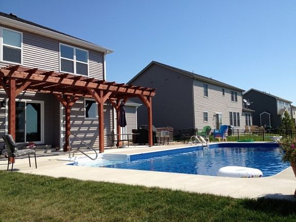 Open floor plan great for entertaining. Recent improvements are the following, back splash in kitchen, basement finished with a family room, bedroom, full bath, game room and exercise room. In ground pool , pergola, and concrete around entire pool area, gas line for grill and a fenced back yard. Overlooking and direct access the new Porter Park. Home has energy package includes high efficiency furnace and a/c. Double pane low e glass windows. Granite counter tops, 9 foot ceilings on first level. Custom blinds through out home will stay. Over size 3 car garage with additional storage space. Don't miss the virtual tour and floor plan!
