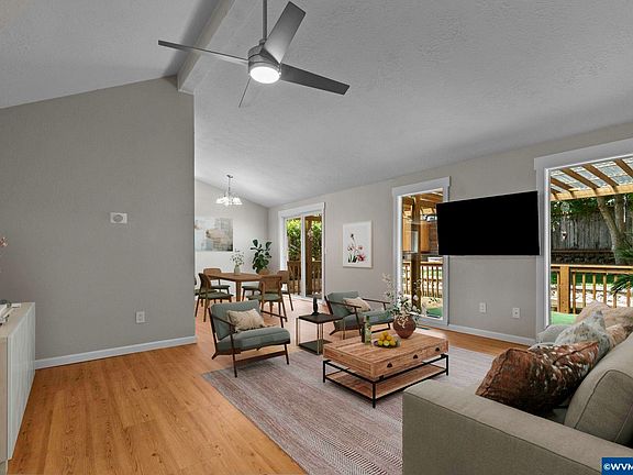 Welcome to your dream home in South Salem! This beautifully updated single-story gem offers 3 spacious bedrooms and 2 pristine bathrooms. Enjoy an open-concept layout with a bright living room, a chef's kitchen with stainless steel appliances, and a cozy dining area. The primary suite includes a luxurious ensuite bathroom. Step outside to a private backyard with a covered patio, firepit, and shed. Located in a quiet, family-friendly neighborhood close to parks, schools, and shopping.