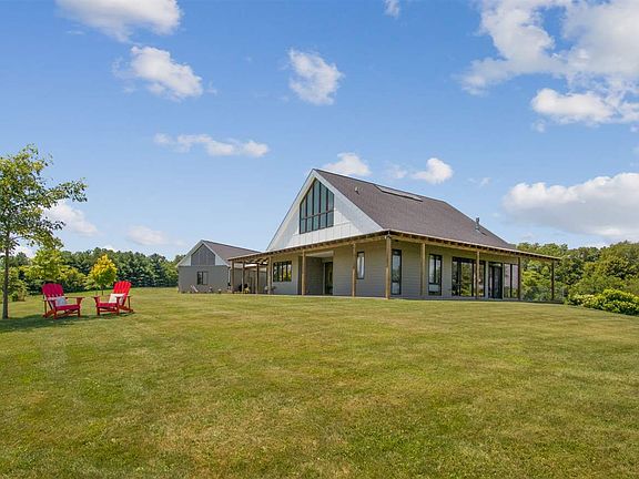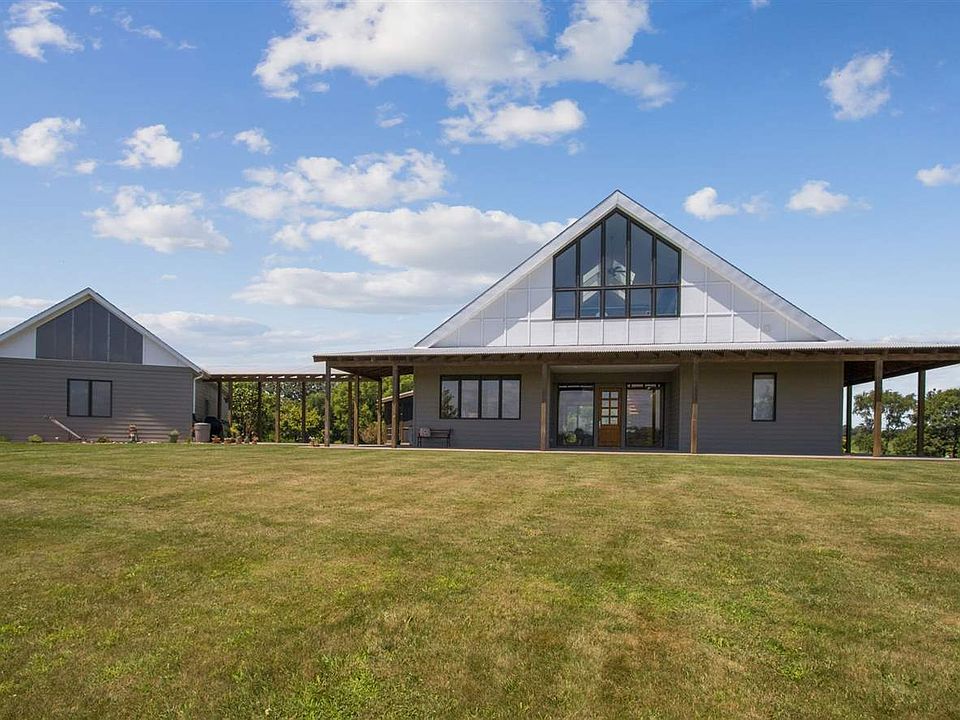 Contemporary farmhouse...glorious skylights & windows...spectacular architecture in serene setting on 5.89A. True sanctuary by Doug Wells, architect. Maple and 4" concrete floors. Front door opens to stunning open staircase to unbelievable master suite with abundant closet space, bathroom with striking architectural windows, new over-sized double shower. Main floor k boasts hickory cabinets, granite counters, fresh paint, lg laundry/mud rm adjacent.Br,bath,double faced gas fp. And the view....Breathtaking.