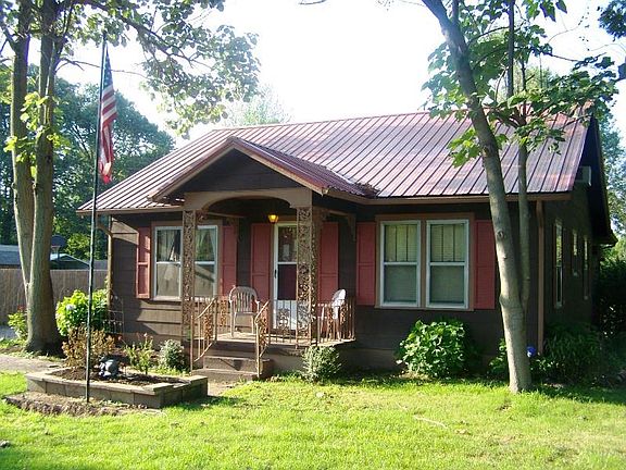 Unique property! 1st bunk house used as a bedroom and has plumbing, large 2-car garage, 2 bedroom house with bonus room upstairs, pond could be filled, tool shed, Pine trees, plants, flowers etc., metal roof, paved drive, central heat/air, nice deck. Easy to show!