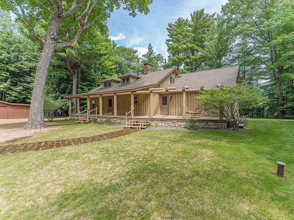 If the charm of yesteryear holds appeal, this beautifully maintained full log home is for you! Sitting on the sandy shores of Dam Lake, part of the Sugar Camp Chain, the 185 of shoreline gives you plenty of room for lakeside fun. The extensive deck provides for soaring views & a place for the family to soak up each other's company. Enough about the outside though, the 2,500+ sq. ft 4BR/3BA home is full of charm & reminds one of a simpler time when family/friend time came 1rst & work 2nd. The sprawling main level features an 8x38 screened in porch, cozy living room w/a fireplace, dining/kitchen overlooking the lake, full BA, & the large En Suite. The upstairs houses the 3 other BRs & 3rd BA while the unfinished basement is currently used for laundry & storage. This package is rounded out w/a detached 2-car grg. w/2 carports, a storage shed & 1.7 acres. If it is time to slow down to enjoy the amenities Northern WI has to offer families, this is what you've been searching for.