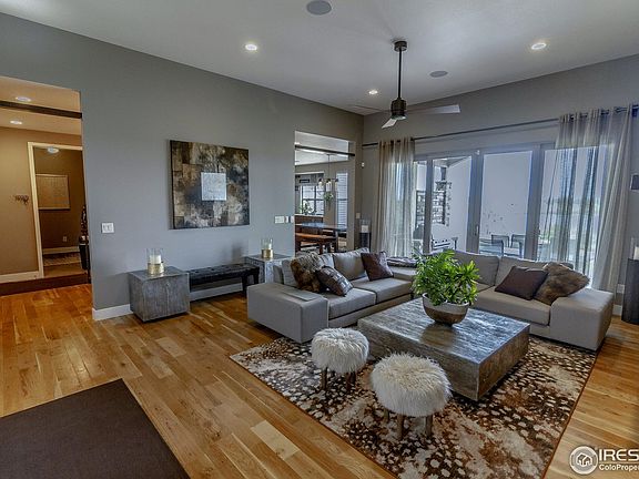 Stunning, contemporary, Ranch style home in SE Fort Collins. It doesn't get better than this with breathtaking sunrise views & stylish finishes throughout. The courtyard welcomes you to this beauty. Inside be wowed by the stone fireplace wall & a kitchen to delight with expansive quartz island, gas cooktop & double oven sure to bring out your chef. Main floor also includes guest suite with private bath. Master bedroom includes stylish, free-standing tub, heated floors & glass shower. Lower level can wow with huge rec room, bedroom, bath and gym room. All this on a big, private fenced lot. Award winning schools complete the package. Make it yours.