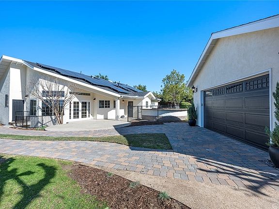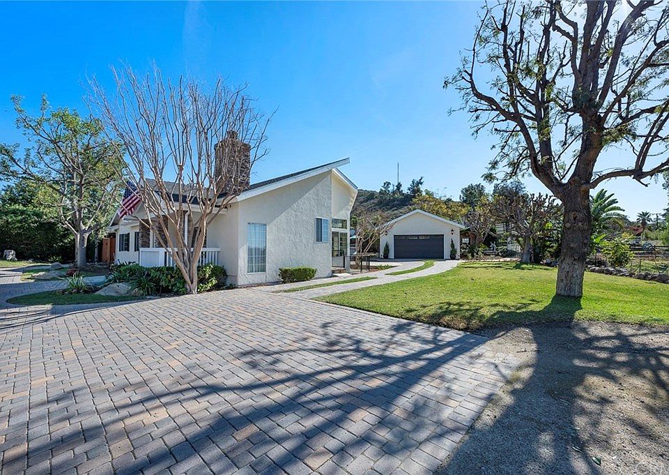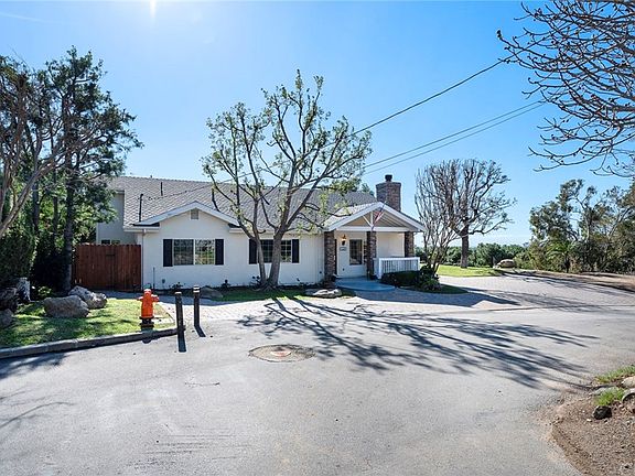 One of a kind city lights view home. This truly unique 4 bedroom 3.5 bath home was rebuilt in the early 2000's. With fresh paint inside and out, this is a "move in ready" dream home. Updates include: Newer HVAC, water heater and kitchen appliances, the roof is less than 6 years old and holds solar panels. The house lives like a single story, with all of the main living space on the ground level. With open concept family room/kitchen and dining room, everyone can enjoy the amazing views from the windows overlooking Orange. The french doors lead to and expansive patio and give you access to the rest of the grounds. Chef's kitchen w/newer appliances, granite counters, maple cabinets, and breakfast bar. Large master w/walk-in closet, and master bath with custom shower w/travertine and tumbled stone as well as a sliding door that takes you to your private patio and retreat. 4th bedroom is currently being used as a bonus room/ theater (approx. 850 sq. ft.) and is located in the basement. You will also find a full bath, kitchenette and a state of the art sound system and 7 movie theater chairs as well. With a separate entrance, this could easily be home to extended family or just a great place for the kids to hang out. The expansive grounds zoned equestrian w/ various fruit trees throughout as well as a custom BBQ island, mature trees, pond and gazebo. 750 sq. ft. 'dream garage' w/plumbing, upgraded electrical, and much more. This is truly a one of a kind property.