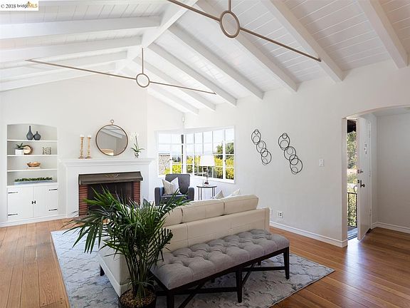 First time on the market this 1939 charming Upper Rockridge gem is being offered to its new owners in move in condition. The living room features vaulted ceilings, random plank hardwood flooring, cozy fireplace and views of the bay. The formal dining room is conveniently located off the kitchen and also features random plank hardwood flooring. The kitchen and bathroom have been tastefully updated keeping the original architecture in mind. The split level floor plan gives the bedrooms a great separation of space from the public rooms. The patio door off the living room leads you out to a stone patio with a terraced rear yard. There is a laundry room off the kitchen with a convenient laundry shoot from the upper level. The detached one car garage is located at the street level. Some of the many upgrades include a high efficiency furnace, tank-less hot water heater, electrical and plumbing upgrades, new sewer lateral, fresh interior paint and a pest clearance.