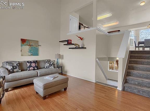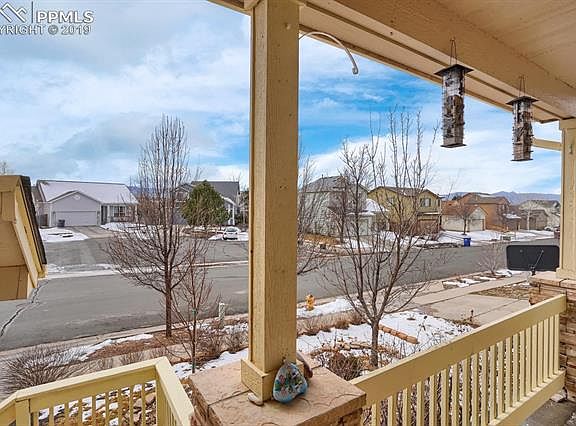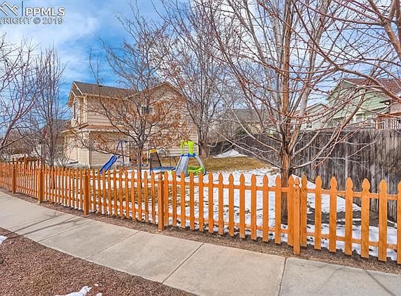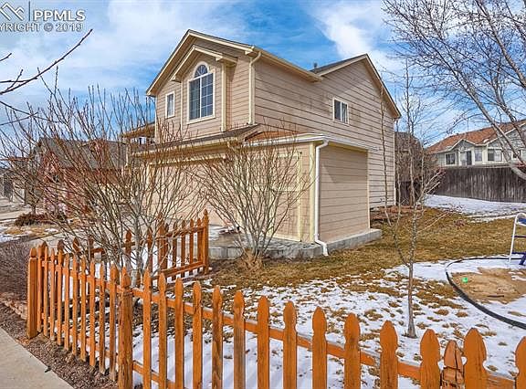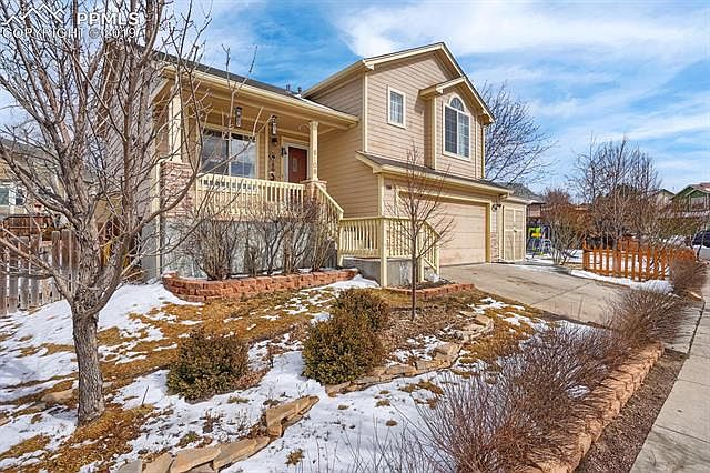 Great value in a wonderful neighborhood. Enjoy the wonderful view from your covered front porch, living room and master bedroom. Magnificent open floor plan with vaulted ceilings and a lot of natural light. This home features three bedrooms and two baths on the upper level, along with the kitchen and dining room. This home sits on a large corner lot with lots of space and privacy. Plenty of storage with two sheds and cabinets the garage. This home is conveniently located to shopping, schools and the Powers/Woodmen corridors. Close to all the amenities and military bases.