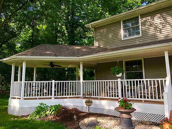 CONTINGENCY 24 hour FIRST RIGHT OF REFUSAL. This enchanting setting is so magical you expect to see a pixie fly by as you enjoy your morning coffee sitting in the gazebo of this spectacular wrap a round front porch. You will also appreciate the beautifully landscaped 1.42 acre double lot that is home to many large, mature shade trees. The other star of the show is the 3 bay 37 x 33 heated garage. The third bay is extra long to host your sports toys or outdoor equipment. The garage also has an extra storage area that borders the garage wall. Garage has 2-200 AMP services. A Honda generator is available to purchase from seller. In the back yard is a vinyl sided shed that has electricity running to it. Inside, there is a first floor den with hardwood floors that could be a main floor 4th bedroom if needed. The kitchen/ dining room is large and spacious with ceramic tile floors for easy clean-up. All kitchen appliances are included. Gas range, microwave, refrigerator and dish washer. 3 large bedrooms upstairs all have hardwood floors and great views of the property. The basement is partially finished with a carpeted cozy area for family time or entertaining. There is a separate area in the basement with more storage and the laundry room. Washer and Dryer are included. In 2007 the home was remodeled with new siding, windows and roof. New Well 7-24-2009. Home has hot water, baseboard heat. 2 minutes from Woodlan Elementary School, and Woodlan JR-SR Campus . Only 15 minutes from 469. You can live your dream of living in the country, close to a big city.