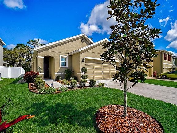 Cute as a button and nearly new! You don't have to wait for your home to be built or be put on a waiting list with this 3/2/2 home built in 2018. This well-maintained home has the open floorplan and modern aesthetic you are looking for! Great curb appeal with newly installed landscaping and rock detail for a fresh look. Enjoy the large, upgraded kitchen that is the center of the home with granite counters and plenty of storage. The adjoining family room and dining area make the most of the space keeping things open and airy. Brand new laminate flooring throughout the home is beautiful and easy-care. The lovely master suite is spacious and includes a double sink vanity in the master bath. The home backs to a preserve and is partially fenced on each side by neighbors, so you can sit on your covered lanai and relax! This one will go fast. Schedule your appointment to see this home today!