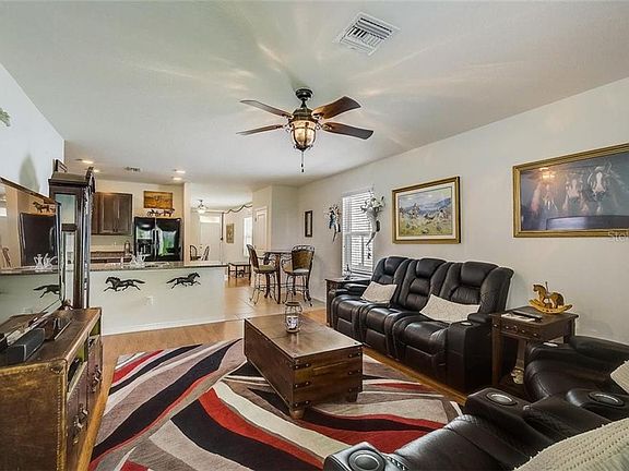- Ceiling Fans(s), Master Bedroom Downstairs, Open Floorplan, Stone Counters, Walk-In Closet(s), Solid Wood Cabinets, Kitchen/Family Room Combo, Window Treatments