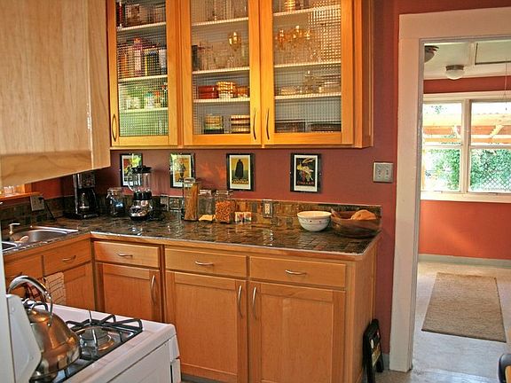 Adorable Bungalow- Looks like an English Cottage surrounded by flowers & gardens! Hardwood floors-Arched doors-New kitchen with gas appliances, gorgeous cabinets with glass doors and beautiful tile! Master opens to 2nd bedroom or office-both have hardwood-Could be changed back to 2 separate bedrooms. Basement has huge bedroom w/egress- 2nd bathroom-2nd kitchen + sitting area! Back yard is spectacular! Perennials-grape vines-raised beds-gorgeous flowers + patio! Fenced 10 easy blocks...
