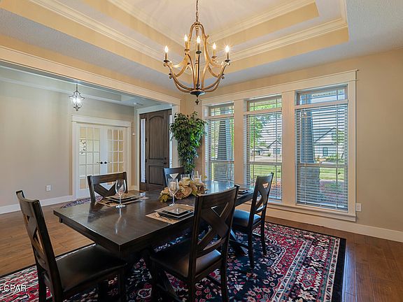 This 4bd, 2.5ba 2800+sqft(with a 3 car garage)brick home on a half acre lot in the gated and very desirable waterfront community of Bayou Oaks North will take your breath away. And the added benefit of no homeowners association...which means...NO HOA FEES!! Additional RV parking with power as well. Roof was replaced after Hurricane Michael(2018). Walk in to a formal dining room on the left and an office/bedroom on the right. The double tray ceilings are gorgeous and give the home incredible height. The custom kitchen comes with granite countertops, built in microwave/induction oven combination, a pot filler and stainless steel appliances, french door refrigerator, induction flat range top, island with a built in wine rack, large pantry, stone backsplash, recessed lighting, and a chandelier pendant over the bar island. The large living room features a stone electric fireplace, double tray ceilings, and gorgeous hardwood floors. Enter the master bedroom(with tray ceilings) to an unparalleled master bathroom with a rain head shower, an additional shower head...and a shower seat! The large laundry room has a utility sink and the sellers just purchased a smart Samsung washer and dryer that can be controlled from your phone. Interior has been partially repainted. Step outside to a covered outdoor porch with a cooking area and built in smoker/barbecue. The completely fenced in back yard guarantees maximum privacy and is SCREAMING for a pool...and we are already providing the outdoor shower :-) The neighborhood fishing dock is steps away and there is a public boat ramp right outside of the community(to the right). Hurry before this beauty gets away! All information is approximate and should be verified by buyers if important.