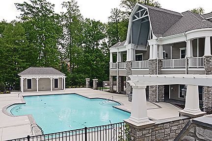 Raleigh Umstead Park swimming pool community with fitness center. 1 1/2 story European styling: stone accent & 3 car garage! 10 foot ceilings! Tray ceiling in dining and two story ceiling in family. 1st floor owner's suite has tray ceiling, huge walk-in closet & lovely spa-like bath with separate his and hers vanities. The Gourmet kitchen features full overlay smoke colored cabinets, quartz countertops & stainless appliances w/ natural gas cooktop. Window Blinds. Screened porch and walk-in storage.